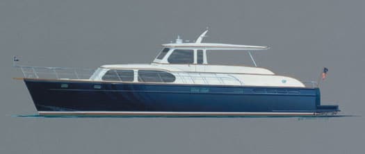 One of the keys to the original Huckins’ superior performance was lightness of weight, and at just 48,000 lbs. the Linwood 56 maintains the tradition. (For comparison, a 54 Hatteras convertible weighs 74,000 lbs.; a 57 Bertram, 76,000.) A lighter weight requires less horsepower, and Huckins designers predict 30 knots with a pair of 660 hp diesels under the hood; typically, a yacht of this length demands twin 1,000 hp diesels, minimum. Smaller engines also burn less fuel. As designed, the Linwood 56 carries its engines way aft, under the cockpit, and spins the props through V-drives. But the first Linwood has twin 670 hp Cummins engines driving Hamilton waterjets. Thanks to the increased efficiency of waterjets and the lower drag of a shaft-, strut-, prop- and rudder-free bottom, the folks at Huckins expect the boat to run a little bit faster. This will be the first Huckins coming from the factory with waterjets, but not the first overall: A 1948 Huckins Offshore 64 was recently rebuilt and repowered with twin Detroit Diesels 8-92TAs and KaMeWa FF375 waterjets (original power was triple 6-71 Detroits); in its new incarnation, the boat makes 30 knots, while drawing less than 30 inches. Waterjets will make the Linwood 56 an ideal gunkholer as well as an efficient, economical offshore cruiser.