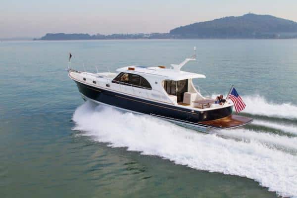 The Dutch really know what they’re doing when it comes to building head-turning boats out of aluminum. The Van der Heijden 52 Commuter has classic good looks and strong modern performance characteristics, with a top speed of 35 knots thanks to a pair of 575-hp Caterpillar C9s. And seriously, look at that bow. Does this boat say, “Let’s go cruising,” or what! Learn more at www.ardell.com.
