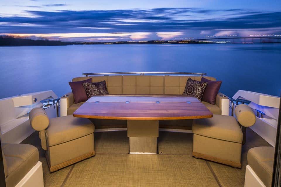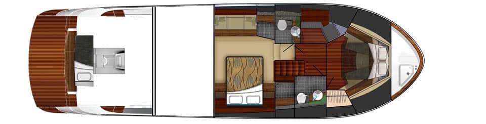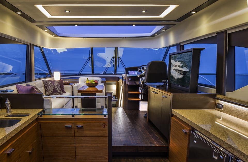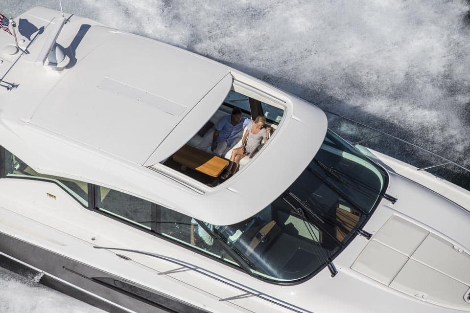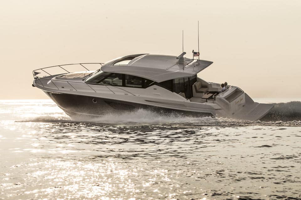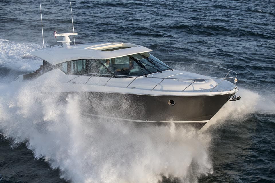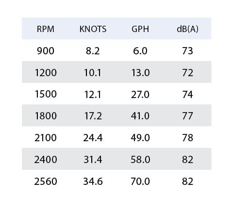 Speeds were measured by GPS on Lake Michigan off Holland, Michigan, in short seas of 3 to 5 feet and winds of 18 to 25 knots with 87 percent fuel, 100 percent water and 10 persons aboard. Fuel consumption was measured with the Volvo Penta electronic engine-monitoring system. Sound levels were measured at the helm with sliding sunroof and aft doors open.