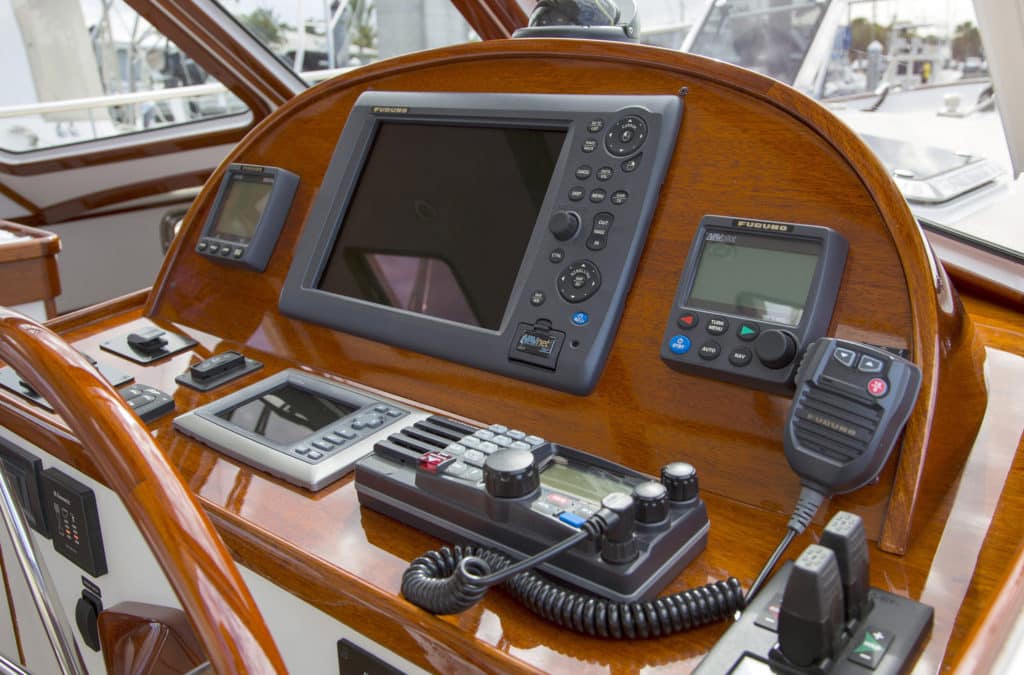 These thrusters also will spin the boat around her vertical center of gravity as though she were a top, albeit a lot more slowly. We idled into the river’s channel and headed north.