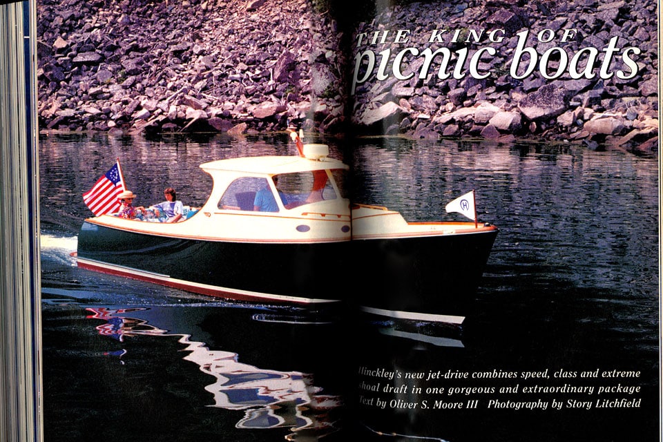 But Shep has an advantage over most of us who just dream about dreamboats. As head of the Hinckley Company he can turn his dreams into reality. And that is just what he has done with the new 36′ Hinckley Picnic Boat, a salty, easily driven, high-tech overnighter that is a head turner at any dock. So perfectly Down East is this Kevlar composite boat that one old salt at the recent WoodenBoat Show in Maine was overheard pontificating to friends: “Now look here, see how that deck takes the paint just so; you can never get that patina with fiberglass.”
