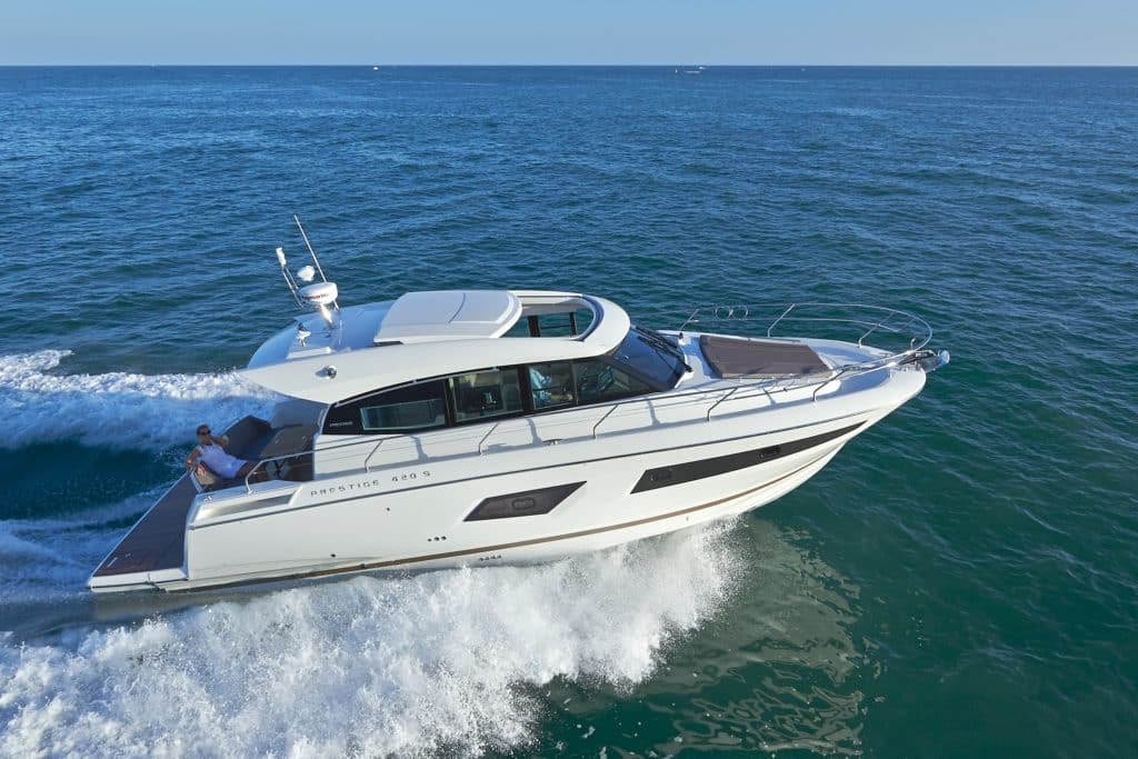 The Prestige 420 is an enjoyable yacht that, with two private staterooms and two heads, is a perfect weekender for two couples or a family.