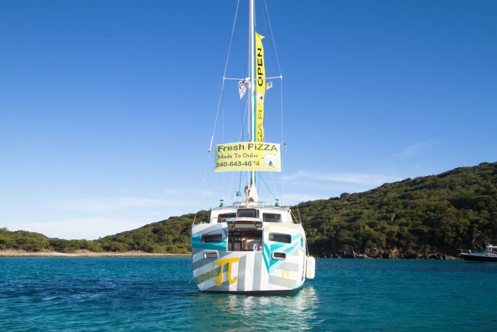 So how do boaters find you? Radio channel 16, look us up at pizza-pi.com or just come out. We’re anchored in Christmas Cove, east of St. Thomas. Remember, pizza is friendly.