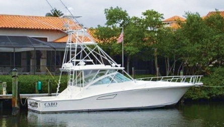 Open For Business: This Cabo 45 Express has twin 1,100-horsepower MAN diesels with just 156 hours. Equipped to fish with a tower, teaser reels, and outriggers, this express has a spacious cockpit and a two stateroom layout. Contact United yacht Sales at (772) 463-3131 or www.unitedyacht.com..
