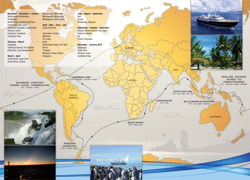 Sherakhan is thus planning a circumnavigation that will follow a charter-driven path around the world for the entirety of 2014. She will start in the Caribbean this winter and then go to Antarctica, South Africa, the Indian Ocean, Southeast Asia, the South Pacific and Central America before returning to the Caribbean for the winter 2014-15 season.
