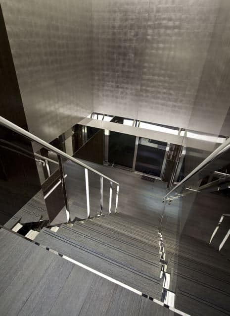 Everywhere you look aboard Satori, the scene is serene, thanks to an abundance of natural colors. The designer employed wenge, spruce and ebony, sometimes as bleached panels, and other times as trim so they wouldn’t be more prominent than the cream-colored suede, white leathers and other tones and textures. The highly sophisticated palladium leaf (think gold leaf, except using the silvery-white rare metal instead) and custom glasswork call some attention to themselves but also contribute to making the rooms as a whole feel a particular way.