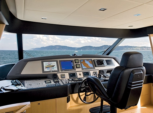 I would never have thought it possible to be writing this report while heading along the Cotes d’Azure in the South of France in 30 knots of wind and seas up to five feet. But here I am, the ride level and true thanks to the wonders of modern stabilizing systems. There is a complete absence of vibration: I may as well be in my office at home except for the wonderful scenery passing along the coast and the azure blue seas. This is what yachting should be like!