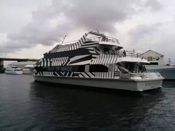 Social media is buzzing today about NBA player Dwyane Wade, who celebrated his 32nd birthday this past weekend aboard the 130-foot Venetian Lady in South Florida. The Miami Heat star managed to turn the yacht into a floating piece of artwork from superstructure to waterline — and inside, too.