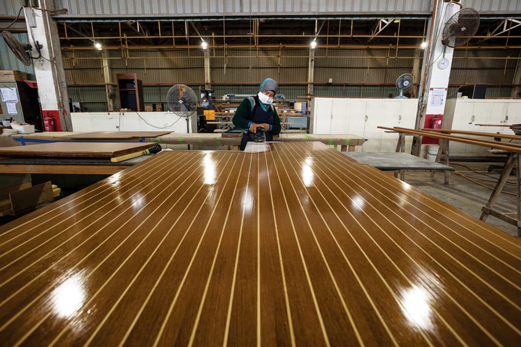 “Within a half-hour of seeing this factory, I knew we could make it work,” he says. “It’s a big pool, but I jumped into the deep end and started swimming. We’re changing the culture here. We’re all about precision. We’ve got an eight-axis router coming in. People may have questions about building boats in Malaysia, but I believe that you can teach anyone to do anything. And I think these new boats we’re building are proving that.”