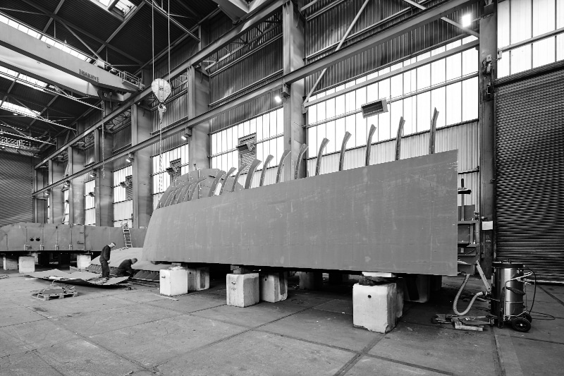Moonen Shipyards in the Netherlands has begun construction on its first Matica motoryacht from the semi-custom Caribbean series, with exterior design by Rene van der Velden and interior design by Adam Lay Studio. The team, working with the owners, has changed the shape of the transom, which will be a hatch that opens to create a large swim platform. Here’s a look at the yacht taking shape in the shipyard. More details are at www.moonen.com.