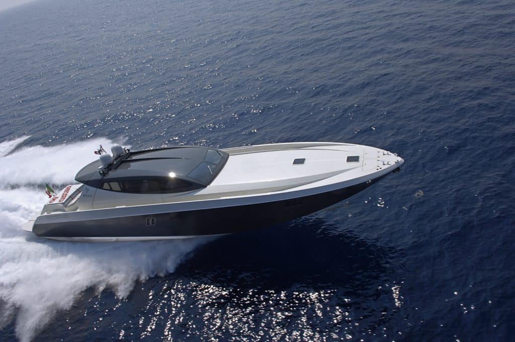 The seven models OTAM builds are a 45, a 50 Open, a 58 Open or HT, a 65 HT, an 80 HT and a Millennium 100. Its shipyard is in Genoa and employs about 50 people. Hulls are composite, made with a blend of aramat and vinylester resin. Top speeds of 50 to 58 knots are possible depending on the model, and on average, OTAM says, its boats consume no more than 2.6 gallons of fuel per nautical mile at 40 knots — as much as 40 percent less fuel consumption than some competitors.