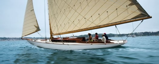 The 43-foot, gaff-rigged sloop, the first of 18 commissioned by the New York Yacht Club from 1904 to 1905 and designed by legendary naval architect Nathanael G. Herreshoff, had been lovingly restored by Stimson and his fellow workers at the Boothbay Harbor Shipyard, which specializes in traditional wooden boatbuilding and restoration. Now serving as a floating showpiece for the shipyard, Alera (her original name) was one of six NY 30s participating in the 2005 International Yacht Restoration Society (IYRS) Cruise, which, not coincidentally, preceded an IYRS celebration in Newport marking the 100th anniversary of the NY 30 class.