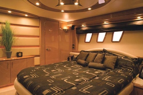 This is also true in the living accommodations where several layouts are possible. This 70 was outfitted with four staterooms-forepeak VIP with en suite head, portside day-head with twin berth just aft, over/under quarters to starboard, amidships master-and a stern cabin for a captain or crew member. Other choices to consider are the three-stateroom and stern-cabin layout or the option of his-and-her heads in the master with double crew quarters aft. No matter the configuration, all have generous stowage. And accommodating semi-custom requests is part of the Marquis philosophy.