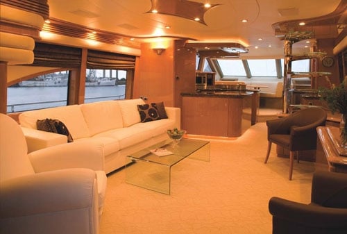 And this is how I come to embark on my civilized adventure.”This was a great idea,” Dick Nocenti, Marquis’s director of marketing communications, said to me as we headed up the coast from Ft. Lauderdale to Palm Beach and The Champion course at PGA National Resort and Spa in Palm Beach Gardens. Along with us were his wife Joan, Randy Peterson, Marquis’s manager of propulsion and systems engineering, and photographer Jim Raycroft. I smiled and nodded in agreement. The Marquis 70’s 1,360-horsepower MTU diesels gave us a 24-knot cruising speed. One glance at the gauges and I could sit back and enjoy a ride made even more pleasurable by the comfortable leather helm seat and the air-conditioned bridge.