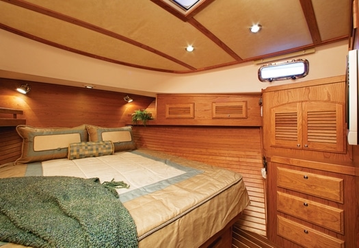 Like that 34-foot sailboat, the 40’s systems, albeit far more extensive, are easy to service. Service points on the Cummins were inboard, and outboard access was more than ample. Our test boat featured the standard 9.0 kW Onan generator.