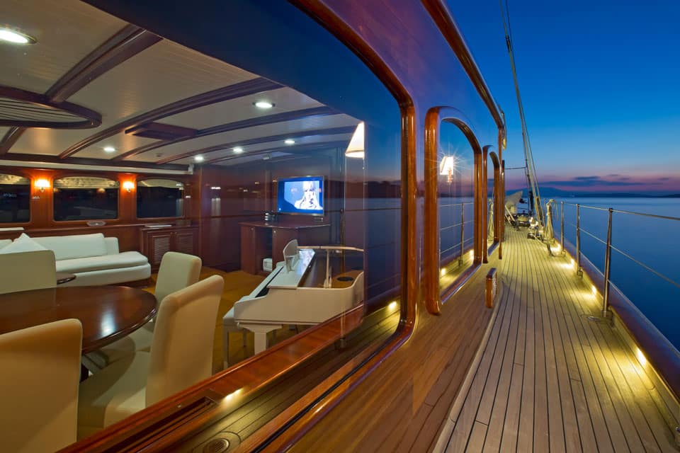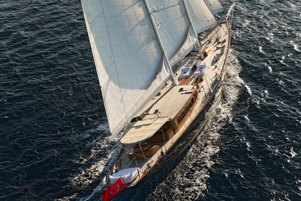 It gave her a steel hull, a smashing profile and a schooner rig that helps her leave Turkey’s fleet of charter gulets in her wake.