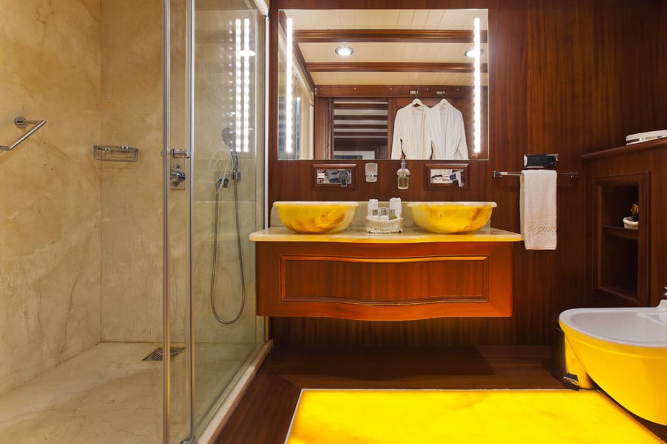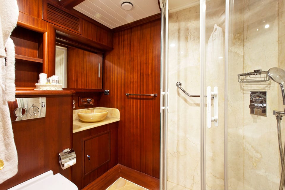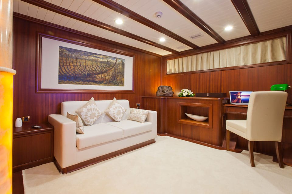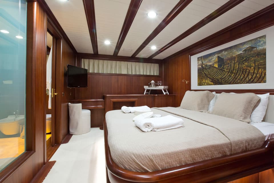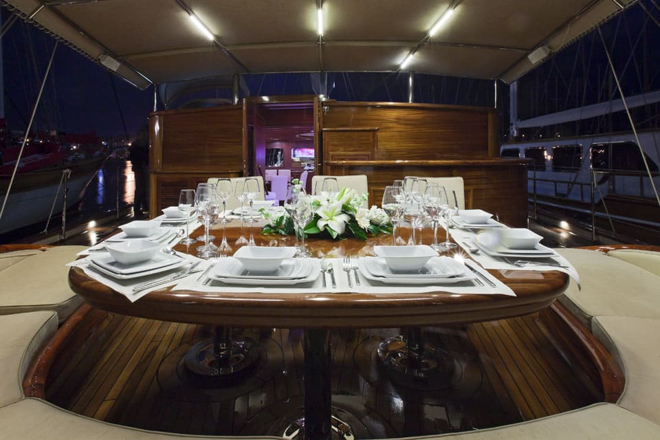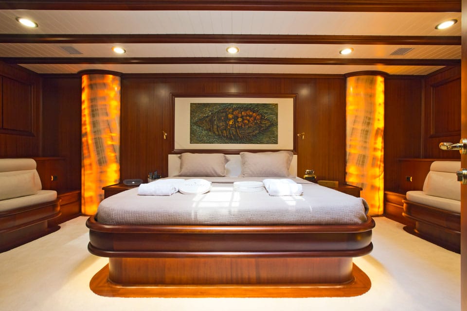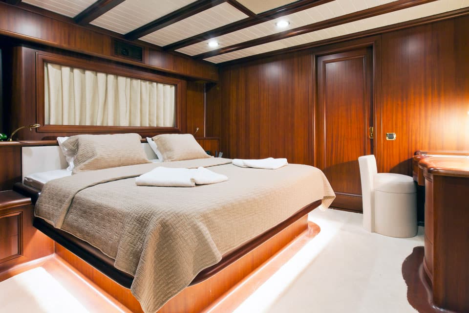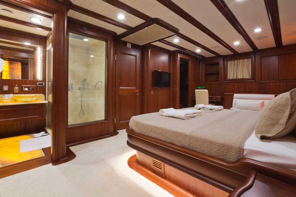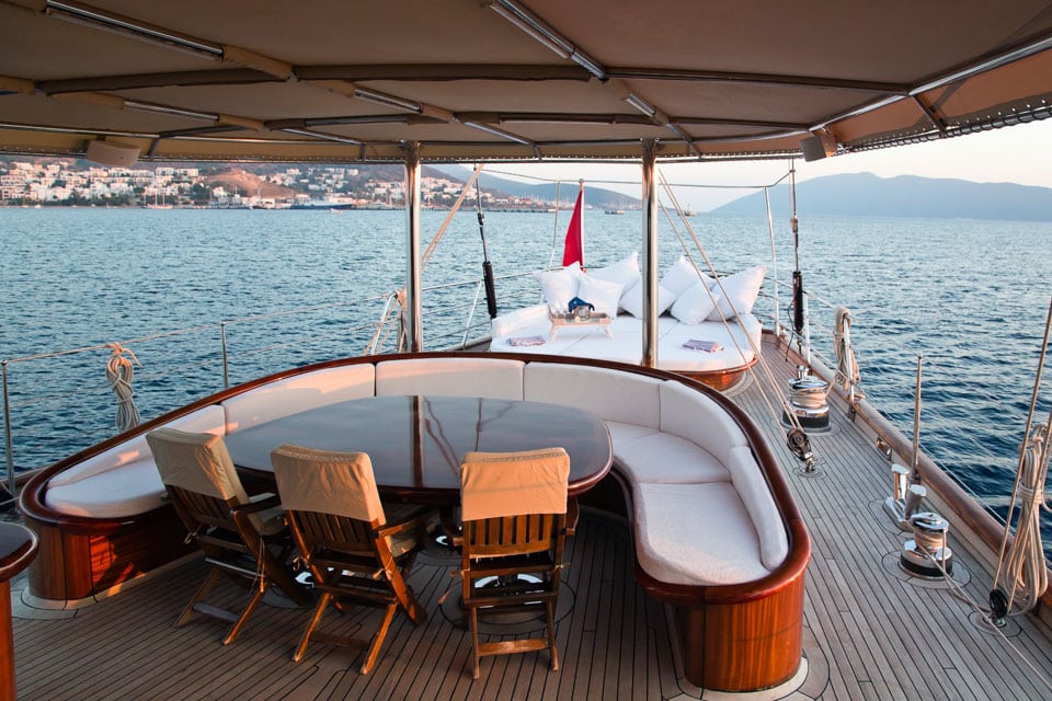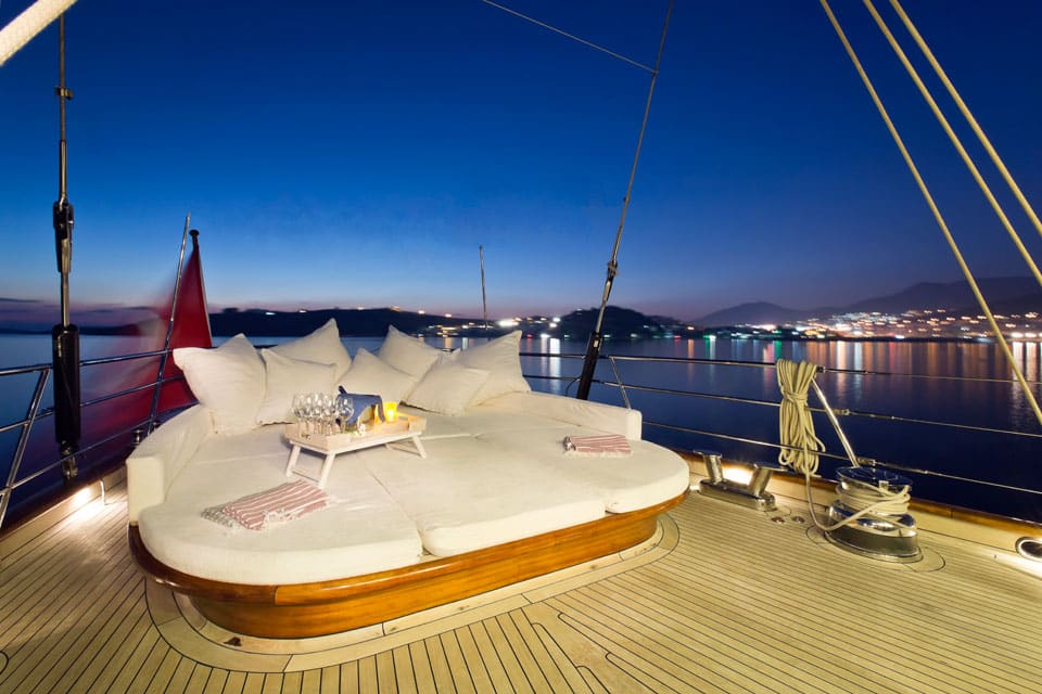 Being on board feels like true performance sailing when Regina is under way, yet also feels like classic gulet lounging when she’s at anchor off the coast of Datca or Marmaris.