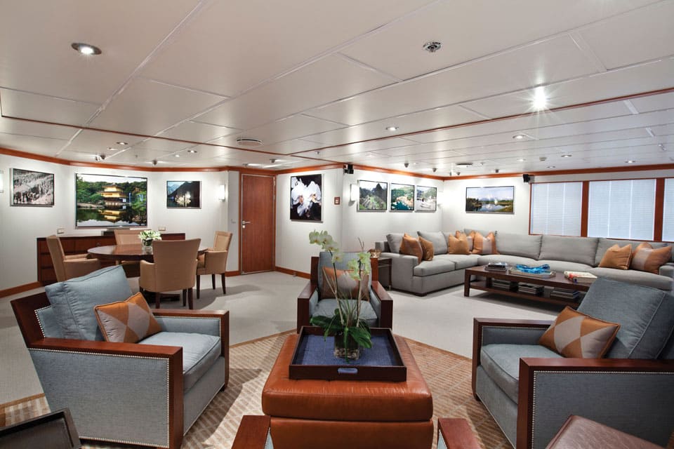 Although Silver Cloud’s draft of 11.5 to 13.5 feet limits the number of harbors available to her, the yacht’s extraordinary stability and easy motion allow her to anchor comfortably outside most harbors. This makes her the perfect yacht for adventures — drop the hooks, launch the tender and go. She’s the quintessential floating hotel — booked solid for many of the legs of her voyage — and she’s never been out of the water since her launch in July 2008.