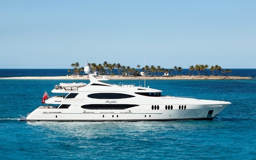Electrical power is provided by a pair of 125 kW KiloPak gensets, and she has Quantum Zero-Speed stabilizers for comfort underway or at anchor. She tows a 29-foot Intrepid with twin 250-horsepower Yamahas, and has a full range of water toys including tandem Ocean and Hobie Odyssey kayaks, plus full fishing and diving gear. To counter the inevitable effects of the gourmet chef, Anjilis has a selection of exercise equipment.