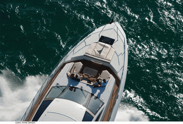 Test Conditions: Speeds were measured by GPS off Fort Lauderdale, Florida, in three- to four-foot seas and 15 to 20 knots of wind, with a ¾ load of fuel, ½ water and eight people on board. Fuel consumption was calculated by the engine-monitoring system.