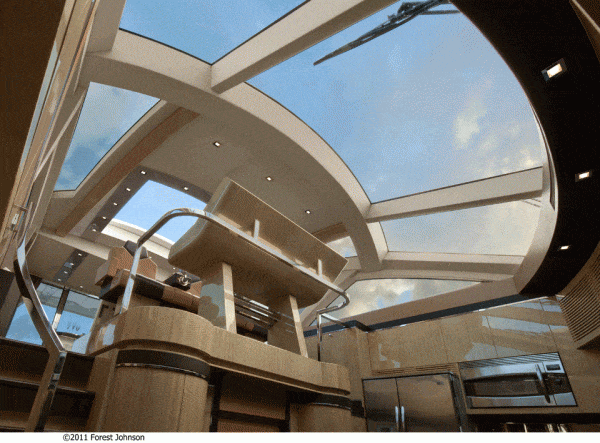The tanks are fiberglass and integral, another practice Cheoy Lee has executed all their designs for years. “The integral tanks are down low, increasing balance and lowering the center of gravity. The tank baffles become structural transverse web frames, while the tanks create a double bottom,” explained Isenberg.
