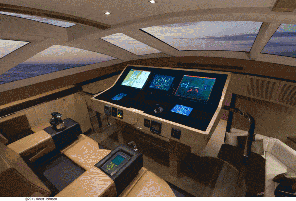 The helm itself is a superbly designed piece of furniture by De Basto that could be on display at New York’s Museum of Modern Art. There was simply no bad angle. The line of sight from the helm was good and it was easy to see traffic in all corners.