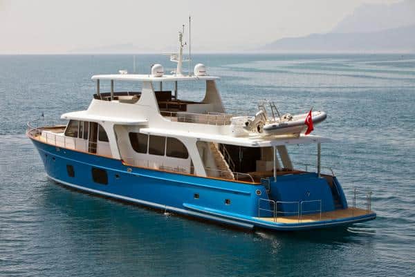 Back aboard, I had a good look at Moni and marveled at the workmanship. She’s a composite vessel, built from cold-molded mahogany in one of the company’s three manufacturing plants in the free-trade zone of Antalya, in southwestern Turkey. She’s a modern-day testament to the age-old tradition of wooden boatbuilding, where craftsmanship is king. While many may argue that using vacuum-bagged cold-molded wood is nothing more than a standard composite construction technique, others will swear that it is at the pinnacle of wooden boatbuilding methods. It is only when talk turns to hull weight that the traditionalists begin to lose ground. Although cold-molded hulls weigh the same as, or less than, conventional GRP examples, the most sophisticated carbon fiber laminates and many resin-infused hulls are lighter. Our host, Sebahattin Hafizoglu, is chairman of Vicem, and his yard on the Bosporus was among the first to embrace blending traditional skills found in the construction of the Turkish gulet with emerging cold-molded wood-and-epoxy techniques. Pestered by local resorts and businessmen clamoring for anything he could build, he started Vicem. Twenty years later, the wider world, and in particular the North American market, have come to recognize Vicem’s great-looking designs and superb craftsmanship.
