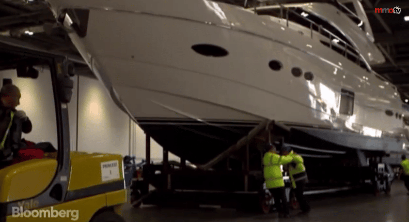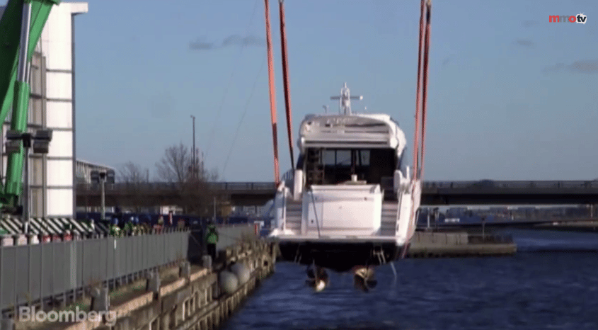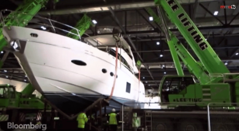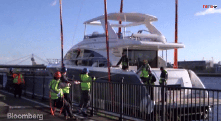 Once the yachts arrived, they were all hauled out of the water using a 1,000-ton crane and then moved to their show location using specialized trailers (see video below).
