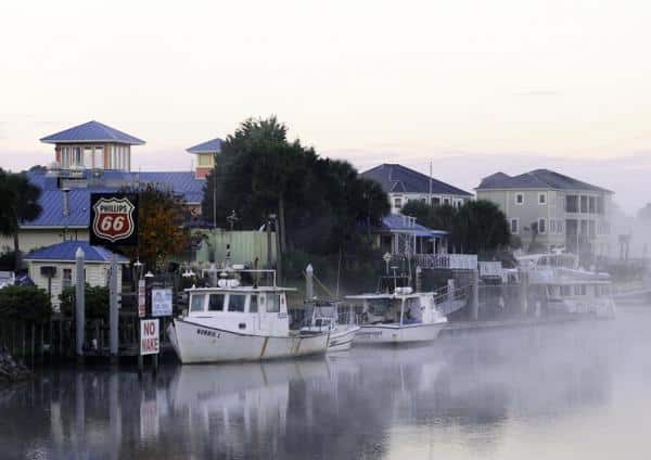 With 120 miles still to go to Charleston, it’s time for an overnight stop at Harbourgate Resort & Marina, just 10 miles north of Myrtle Beach. We grab a casual dinner at the on-premises restaurant and plan for an early departure the next day. Morning fog causes us a slight delay, but it also provides dramatic scenery along the way. We consider running outside as we near Georgetown, but because of a stiff wind and opposing tide in the Winyah Bay Inlet, we stay inside, running all the way to Charleston in nine hours.